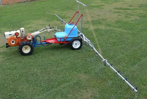 – Adaptável em qualquer marca/modelo de micro trator – Capacidade 250 litros de calda – Chassis em aço carbono de alta resistência – Tanque em polietileno com proteção UV – Possui lava frascos e reservatório água limpa 15 litros – Acionamento das barras por catracas – Barras de 10 a 12 metros em aço carbono galvanizadas – Sistema de mola nas barras para absorção de impactos – Tubos de PVC com porta bicos Trijet e mangueiras 400 psi – Altura aplicação de 0,30 a 1,20 metros – Distancia de 1,10 metros entre rodas – Possui reabastecedor modelo ecológico com válvula e mangote 5 metros – Possui Filtro de sucção com válvula e filtros de linha malhas 50/80 – Bomba alta pressão e vazão 40 a 60 lpm – Comando manual 4 vias com regulagem da pressão e manômetro em glicerina – Permite abertura e limpeza de todos os filtros mesmo com tanque cheio – Ideal para micros tratores de 09 a 18 cv – Pneus aro 14 – Possui freio com travas para estacionamento acionados por pedal – Peso médio 140 kg OPCIONAL Capota em polietileno DESCRIÇÃO TÉCNICA DETALHADA – Chassis em aço carbono alta resistência e perfil U de chapa 4,76 mm – Tanque confeccionado em polietileno com capacidade de 250 litros com proteção UV – Porta bicos Trijet (três saídas) com sistema de antigotejamento – Barras confeccionadas de tubo quadrado 35 mmx35 mm e 2 mm de espessura dobráveis e galvanizadas – Barras de 10 ou 12 metros comprimento com porta bicos na distância de 50 cm cada um – A distribuição da calda ocorre por canos de PVC e mangueiras de 400 psi – Possui filtro de sucção com válvula e filtro de linha individual malhas 50 e 80 – Possui abastecedor modelo ecológico com mangueira de 5 metros e peneira na ponta – Possui peneira na entrada, lava frascos e reservatório de água limpa de 15 litros – A bomba que faz a propulsão do líquido é composta por membranas, aumentando assim sua vida útil, com uma vazão de 40 a 60 litros por minuto – Comando com regulagem de pressão e vazão, e com abertura e fechamento individual dos lados direito e esquerdo com manômetro em glicerina – Levante das barras com catracas acionadas de forma manual ao lado do operador – O conjunto completo de barras também pode ser levantado através de um jogo de catracas na parte inferior do pulverizador (opcional) – Altura de aplicação de 0,30 a 1,20 metros podendo ser limitada conforme o modelo dos pneus utilizados – Distância de 1,10 metros entre rodas (largura) – Equipamento permite a abertura e limpeza de todos os filtros mesmo com tanque cheio sem desperdício de calda – Freio com trava de estacionamento acionados por pedal – Utilizado na aplicação de fungicidas, herbicidas, inseticidas, microrganismos e outros para culturas perenes e anuais – Antes de comprar verifique quais dos itens compõem modelo escolhido – Equipamento com um ano de garantia OBJETIVO DO EQUIPAMENTO Realizar pulverizações com alta qualidade e máximo desempenho principalmente em regiões de predominância da agricultura familiar que possui como instrumento de trabalho o micro trator. Pode ser utilizado diversos tipos de produtos que auxiliam o produtor a controlar pragas, doenças e ervas daninhas em sua lavoura.